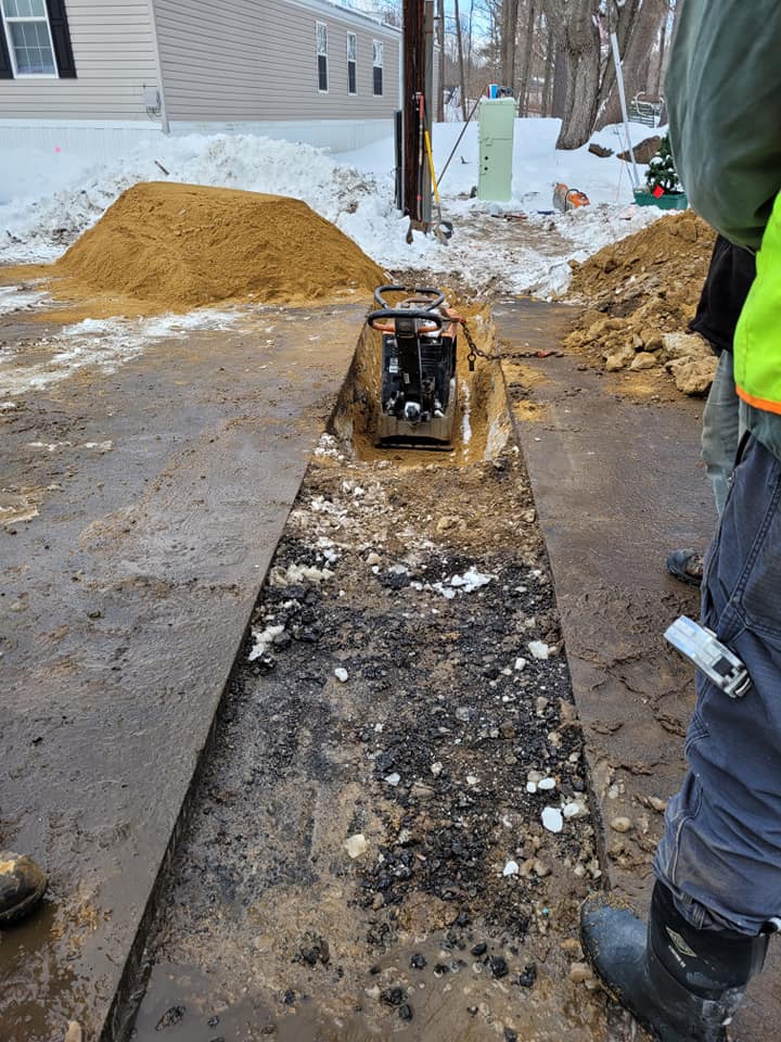 Larry and his crew were up in Tilton on an Eversource job for the last week or so. They had to install approx 140′ of 3″ conduit from an existing riser pole to a meter bank. With the exception of locating an out of service leach field, it went very smooth. Great job and flexibility with the weather to get this one done in a timely fashion!